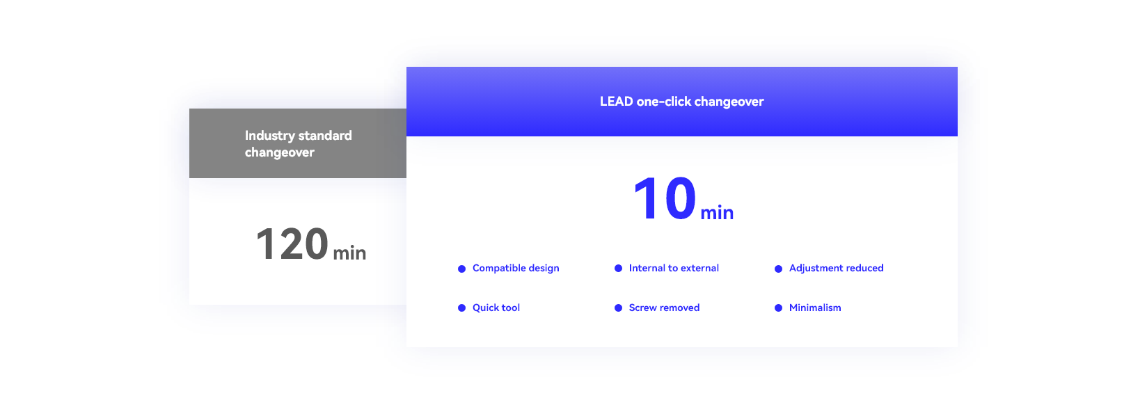 LEAD made a breakthrough in the industry changeover time, achieving one-click changeover in 10 minutes.